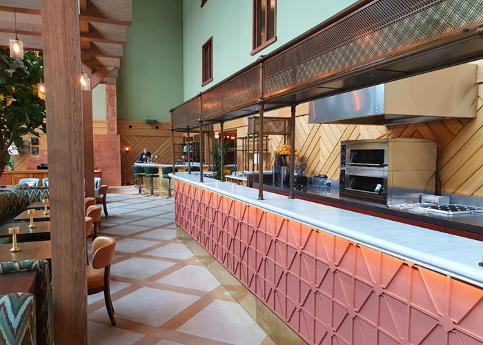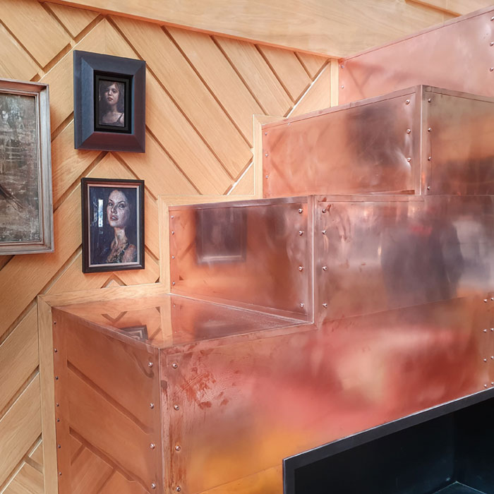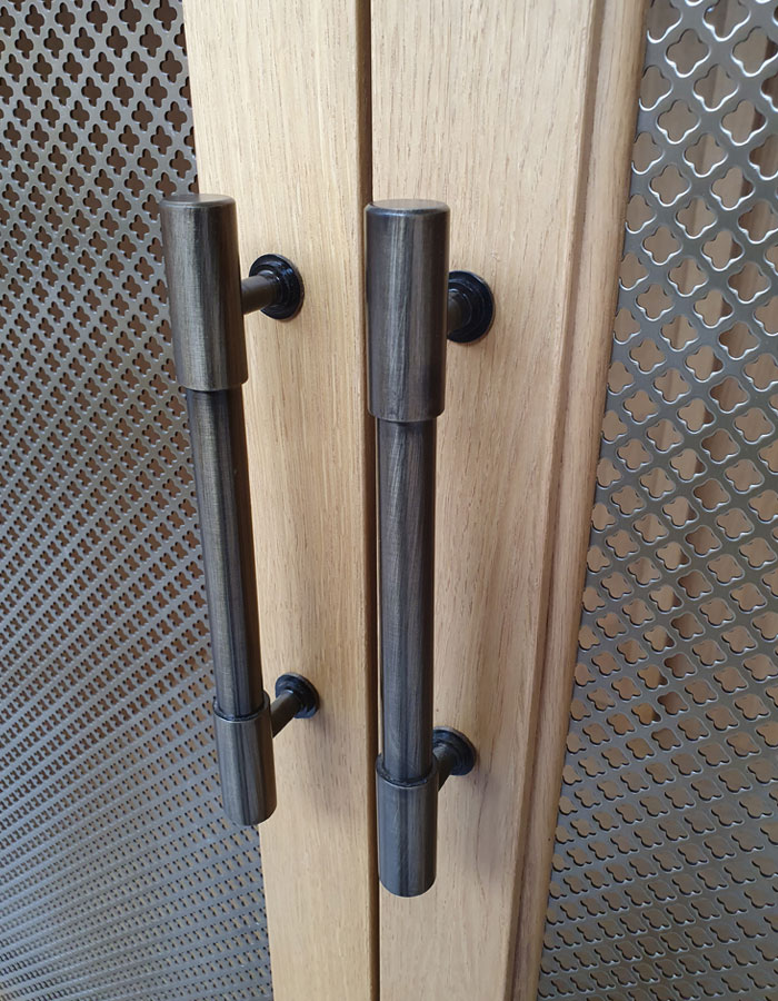 Wat een klus was dat! Er kwam van alles aan bod; verschillende materialen ( oa staal en koper ), verschillende afwerkingen ( oa brons, messing en poedercoating), verschillende materiaalvormen ( oa plaatmateriaal, koker en rasters ).