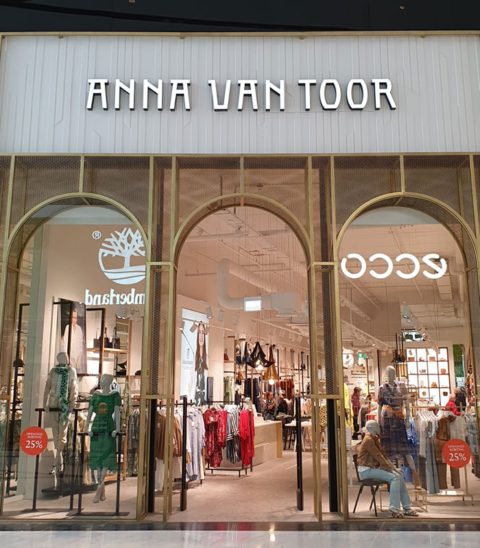 En dan hier het zeer geslaagde resultaat voor de winkelpui van Anna Van Toor in winkelcentrum Leidschehage te Leidschendam.