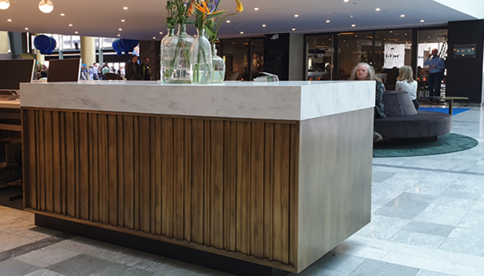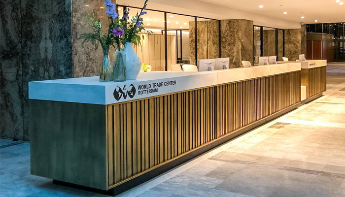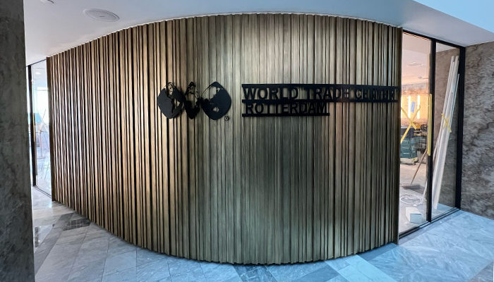Voor het WTC In Rotterdam hebben we het messing werk voor de balie en wand met logo verzorgd. Alle vermessingde delen zijn met de hand bewerkt waardoor een unieke uitstraling is ontstaan die lijkt op brons