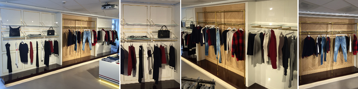 Kledingrekken en diverse meubelen, zowel metaal and finish, voor diverse winkels van Tommy Hilfiger oa in Parijs, Amsterdam & Singapore.