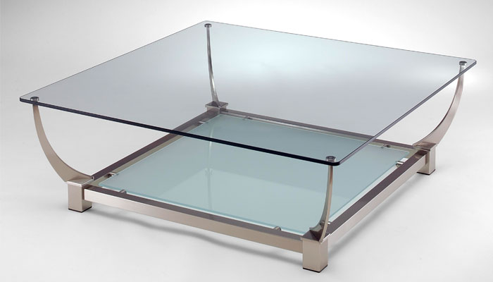Onze tafeltjes Rhodos, gemaakt van plexiglas met messing en glas.