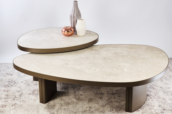De Stavanger tafels bestaan uit een stalen frame met een massief stalen rand. De tafels worden uitgevoerd met een keramiek blad. Het frame kan worden uitgevoerd in diverse finishings zoals Old Steel, Gebruineerd Messing, Antiek zilver, Anodic brown, Champagne of een ral-kleur naar keuze. Klik hier voor de keramiek-kleuren.