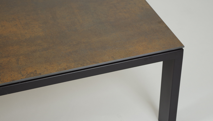 De Boston tafels kunnen worden afgewerkt in de uitvoeringen Gebruineerd messing, Rvs, Old steel of een RAL kleur.De tafelbladen zijn van keramiekKlik hier voor de keramiek-kleuren.