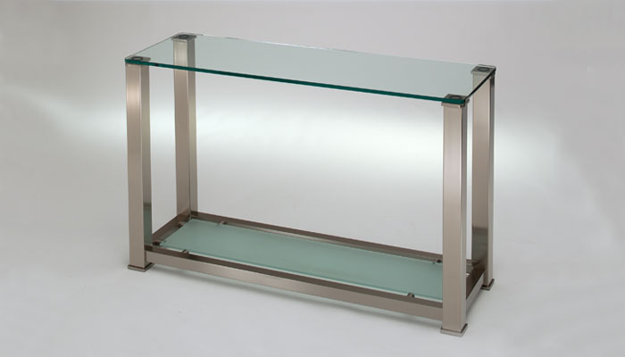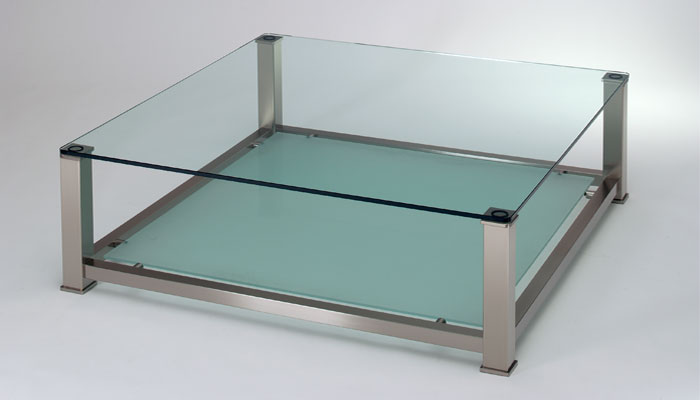 De Alfa tafels worden uitgevoerd in geborsteld nikkel of gebruineerd messing (brons). De bovenste glasplaat is 12mm dik, de onderste glasplaat is 8mm dik satijnglas.