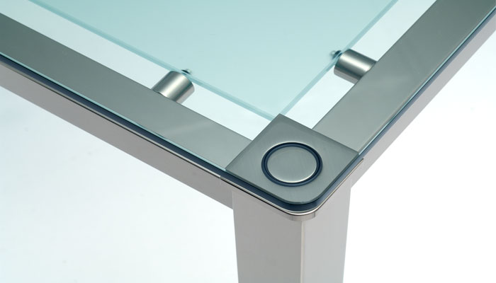De Flash tafels worden uitgevoerd in geborsteld nikkel of gebruineerd messing. In geborsteld nikkel heeft deze tafel een moderne uitstraling, in gebruineerd messing een klassieke uitstraling. De bovenste glasplaat is 12mm dik helder glas, de onderste glasplaat is 8mm dik satijnglas.
