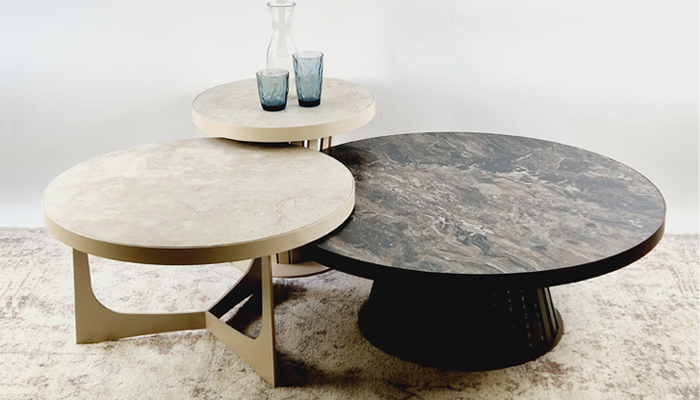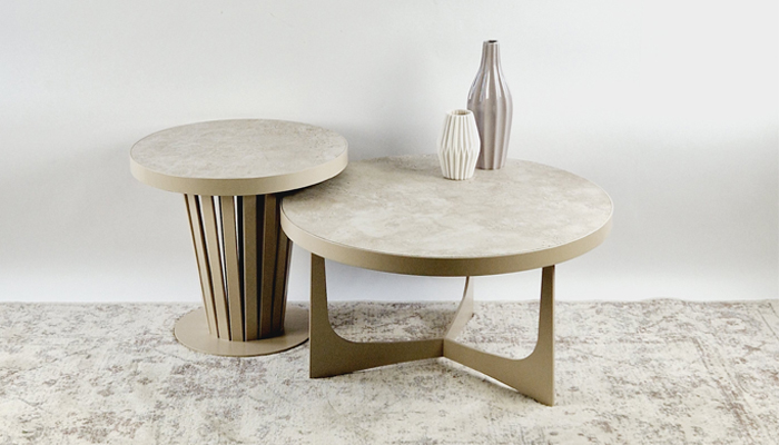 De Dalton tafels bestaan uit een stalen frame met een massief stalen rand. De tafels kunnen met een keramiek blad, eiken-fineer blad of met een blad met een kunstleren print afgedekt met een heldere glasplaat. Het frame kan worden uitgevoerd in diverse finishings zoals Old Steel, Gebruineerd Messing, Koperbrons, Warm zilver, Anodic brown, Champagne of een ral-kleur naar keuze. Klik hier voor de keramiek-kleuren.
