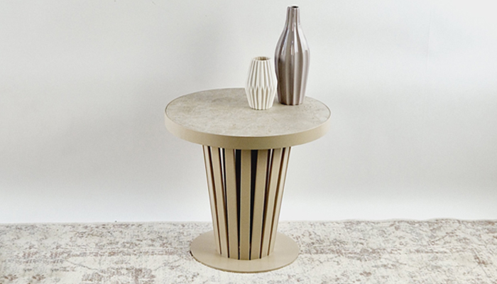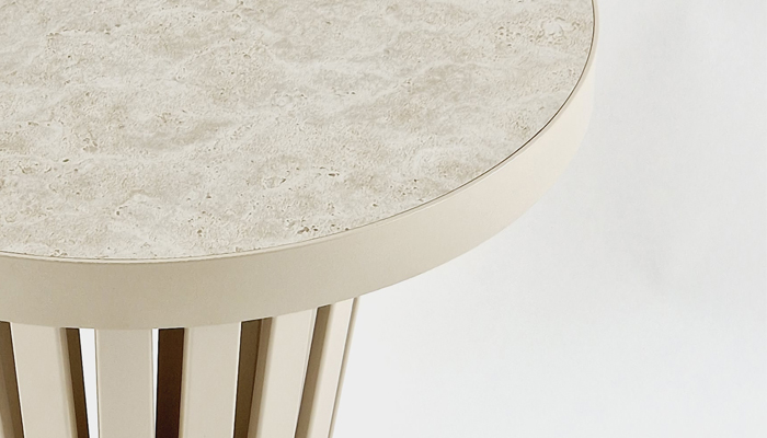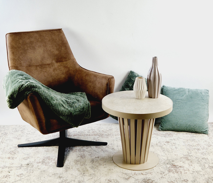 De Volta tafels bestaan uit een stalen frame met een massief stalen rand. De tafels kunnen met een keramiek blad, eiken-fineer blad of met een blad met een kunstleren print afgedekt een heldere glasplaat. Het frame kan worden uitgevoerd in diverse finishings zoals Old Steel, Gebruineerd Messing, Koperbrons, Warm zilver, Anodic brown, Champagne of een ral-kleur naar keuze. Klik hier voor de keramiek-kleuren.